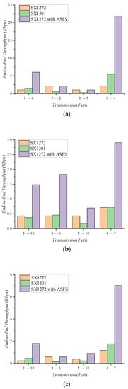 SX1272 with ASFS supports high end-to-end throughput due to low average SF and high bandwidth per link. In the multi-hop network, it provides higher throughput than SX1272 and SX1301 due to lower SF of the path and higher bandwidth, respectively. Through the ASFS scheme, throughput is projected to substantially increase, and the network construction cost is reduced.