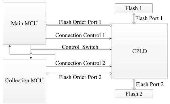 As shown in Table 1, the Control Switch decides whether Connection Control 1 or Connection Control 2 determines the connection relationship. In the operations, except seismic acquisition, only the main MCU should use the flashes for stored seismic data transmission, so the Control Switch is set to high by default. Connection Control 1 and Connection Control 2 are also set to high by default.