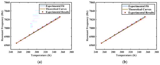 Since the stiffness of the resonator varies with the elastic modulus under varying temperatures, the resonant frequency of the resonator will also change. Assuming that the temperature-dependent elastic modulus of the resonator is [,,,,]