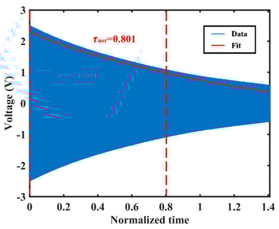 The ring-down time constant measurement of the resonator in 253.15 K is shown in Figure 7, and the result is normalized with respect to the ring-down time constant at 333.15 K. It is shown that the normalized ring-down time constant (low-frequency axis excited) of the resonator at 253.15 K is about 0.801.