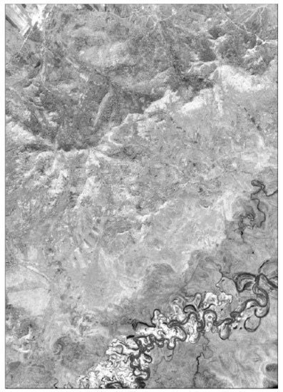 CORONA images, Landsat TM, and Landsat OLI are the main data sources used in this study to obtain land-use patterns during 1965–2015. In this study, 18 CORONA black-and-white images with a ground coverage of 14 × 188 (in kms) were used to map the land-use distribution patterns of 1965 (Figure 2). The CORONA images were acquired by a telescopic camera system and scanned as digital black-and-white images at a 7-micron (3600 dpi) or 14-micron (1800 dpi) resolution. The CORONA images used in this study have a spatial resolution of 6 feet (1.8 m). Eight CORONA satellite images acquired on 13 July 1964 and ten images acquired on 24 September 1966 were downloaded from Earth Explorer, USGS, to cover the whole study area. The CORONA images were re-sampled to 30 m to maintain consistency with the Landsat images. The principle behind the selection of RS images in order to obtain land-use data is that the imaging date (season) should be consistent. The imaging date of RS images in this study ranges from June to September. Image interpretation was mainly based on images obtained in the same month, with images from other months used as a supplement in the uncovered area. Georeferencing of CORONA images was carried out using Ground Control Points (GCPs). For each image scene, at least twenty evenly distributed points served as GCPs. The selected GCPs in the SSP were generally river intersections or road crossovers. Before further visual interpretation, it was essential to evaluate the georeferencing accuracy. The root mean squared (RMS) error of geometric rectification was no larger than 1.5 pixels (45 m) in this study. The minimum mapping unit in this study was no less than 36 pixels (3.24 ha).