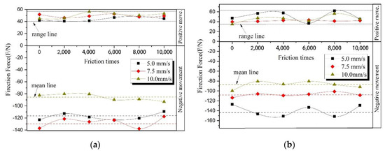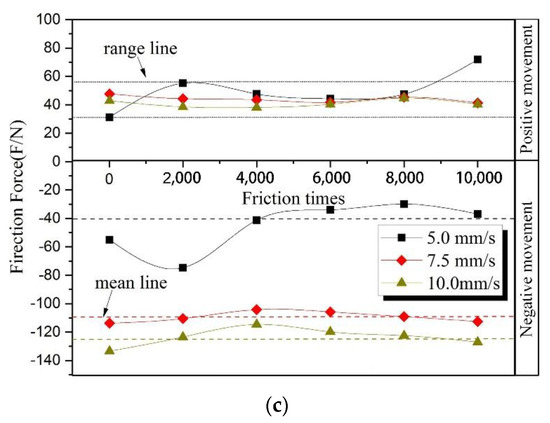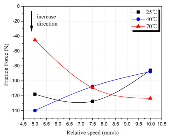 - The friction force decreases along with the increase of ambient temperature at a speed of 7.5 mm/s. Because its reaction time is shorter than the time at 5 mm/s, as the value of friction times increases, the energy accumulation is slightly less, which causes the effect to be slightly smaller, and the reduction of friction is lower.
