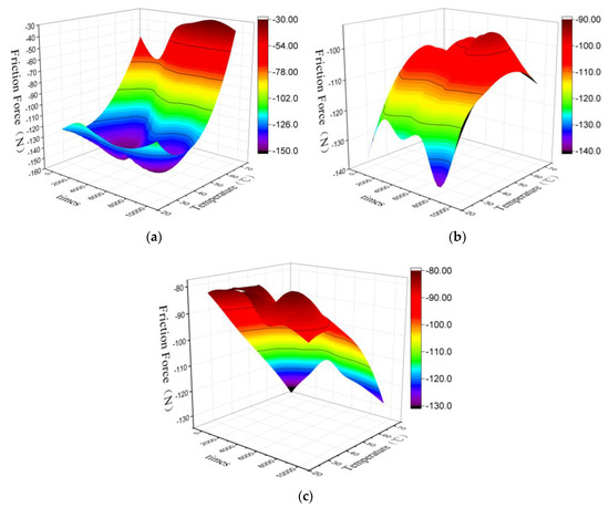 - At 25 °C, due to the low ambient temperature, the reaction requires more energy and the reaction rate is low. The speed of 10 mm/s causes a short reaction time. Although the friction generates a certain amount of heat, it is not enough to greatly increase the reaction rate. The result shows that the friction force is minimal; when the speed is 7.5 mm/s, the heat generated by the friction increases the reaction rate, and the friction is maximized in combination with the slightly extended reaction time; slower speeds of 5 mm/s provide more reaction time, which will generate more friction force than a speed of 10 mm/s. It also shows that the friction speed has less influence on the friction in a lower temperature environment.