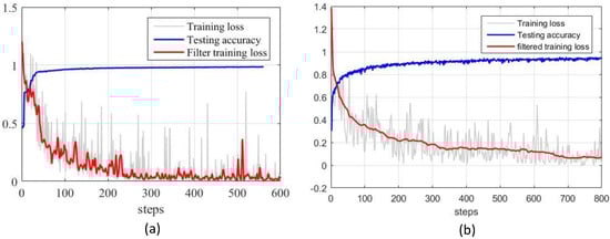 The training of the proposed online detection module is performed as follows: First, the proposed tactile dataset is used to train the LSTM-based encoder–decoder. The training of the encoder–decoder only requires the samples contained in the tactile dataset since the training process was in an unsupervised learning setting. The trained encoder–decoder is used to compute the latent represents h of all the samples. Next, we train the slip classifier and material classifier jointly by using all the latent representations of the samples and their corresponding labels. The training parameters of the online detection module are set as follows: The number of epochs is 20, the batch size is 5, and the learning rate is set as 0.00001. We use an Adam optimization method to optimize these two classifiers.