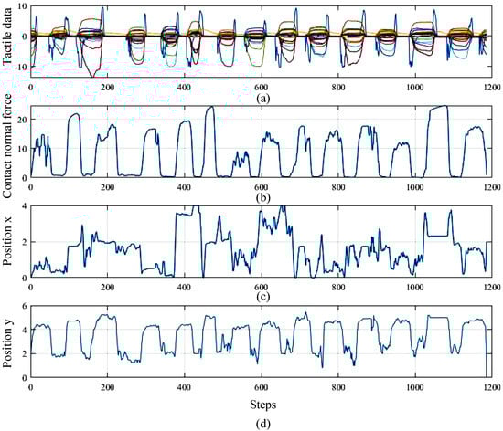 Illustration of force estimation. (a) the tactile data collected from the BioTac sensor; (b) the contact force; (c,d) show the contact location on the x- and y-axes.