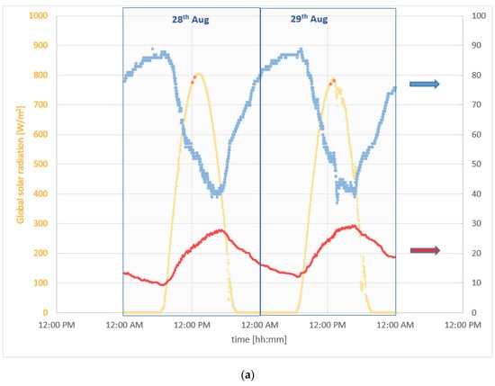 - Nardi, I.; Ambrosini, D.; Rubeis, T.; Paoletti, D.; Muttillo, M.; Sfarra, S. Energetic performance analysis of a commercial water-based photovoltaic thermal system (PV/T) under summer conditions. J. Phys. Conf. Ser. 2017, 923, 012040. [Google Scholar] [CrossRef]