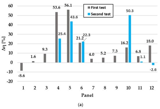 | Panel | ΔIsc (A) | ΔVoc (V) | ΔPmax (W) | ΔFF | Δη (%) |