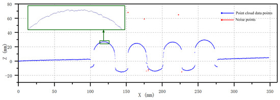 The original point data could be read from the LLS using the abovementioned system. The point cloud of each scanning line includes 1280 points. Due to the surface roughness, surface contamination, and material reflection, noise is inevitably produced during detection [11]. Although the output point cloud was preprocessed by the scanning device itself, the noise points contained in each scan line are limited. It can be seen that there was still noise existing in the raw result. Therefore, an effective denoising method is essential for achieving high measurement accuracy.