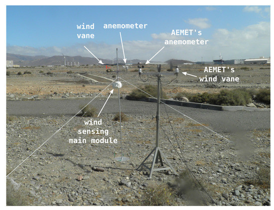 With the aim of validating the measurements obtained with the wind sensing devices which comprise our DIY data acquisition system, we undertook an experimental comparison in real conditions with scientific-grade wind sensors, namely the Thies Clima anemometer model 4.3159.00.140 [67] and wind vane model 4.3129.60.140 [68]. These sensors were kindly provided by the Spanish meteorological governmental agency AEMET (Agencia Estatal de METeorología [69]), which commonly uses them for verification and validation of meteorological wind instrumentation in airports, ports and other geographical locations. AEMET personnel helped us to carry out this experimental validation with their sensors.