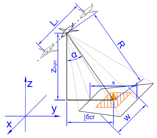 Figure 3. Figure representing geometrical relations between flight segment and scanned POI.
