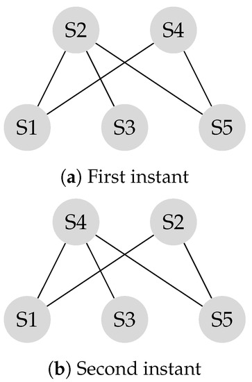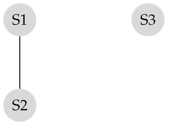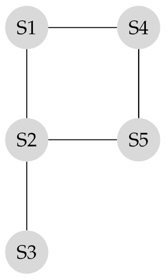 As illustrated in the example in (Figure 8a), the sub-network of sensors and the sub-network of sensors are disconnected. The corresponding transition matrix is derived according to Equation (14).