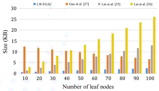 - Lightweight communication overhead: In LW-FGAC, in comparison with the existing work, the communication overhead from a data owner to the cloud server is very few. Indeed, in LW-FGAC, lightweight partial ciphertexts are uploaded to the cloud server instead of ciphertexts with huge size.