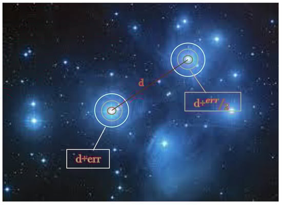 When discussing a distance gap, there is a need to consider the camera calibration effect. Camera calibration should reduce the gap to a minimum by transforming the image pixels to “real world” coordinates. Two factors affect frame distortion: radial distortion, caused by light rays bending nearer to the edges of a lens than the optical center tangential distortion, and a result of the lens and the image plane not being parallel. In our case, we considered only the radial distortion because the stars are so far that their angles to the camera are almost parallel.