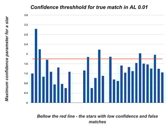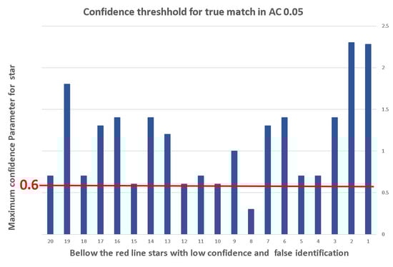 Figure 14 shows the algorithm labeling process. The number near each match represents the confidence that the algorithm has attached to this match. Only matches with relatively high confidence are actually true matches. The confidence threshold for a correct match in this case was , and the parameter was relatively low because we expected light pollution to cause measurement inaccuracies.