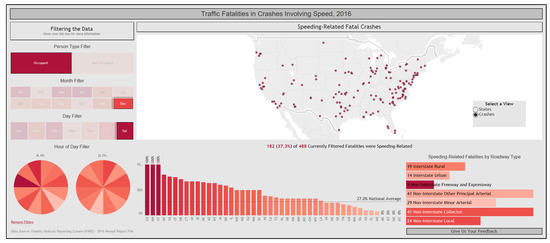 Symbol map showing the location of vehicle occupants killed in speed-related crashes in the US in December, 2016. The dashboard is available at [40].