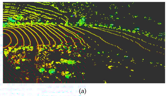- Caltagirone, L.; Scheidegger, S.; Svensson, L.; Wahde, M. Fast lidar-based road detection using fully convolutional neural networks. In Proceedings of the 2017 IEEE Intelligent Vehicles Symposium (IV), Los Angeles, CA, USA, 11–14 June 2017; pp. 1019–1024. [Google Scholar]