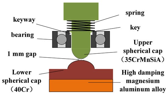 For the design of the latter hemisphere, it was necessary to reduce the thickness of the column part based on the original design and replace it with high-damping magnesium-based alloy material. The upper and lower spherical caps are made of high-strength, high-elasticity modulus metal materials. Under the instantaneous load at launch, the magnesium-based alloy columns at the bottom of lower spherical cap undergo elastic deformation, absorbing a part of the stress [25] and reducing the deformation of the upper and lower spherical caps, as well as the pivoting friction torque of the upper and lower spherical caps.