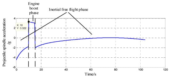 Figure 3. The in-bore acceleration of a 122 mm extended-range guided projectile.