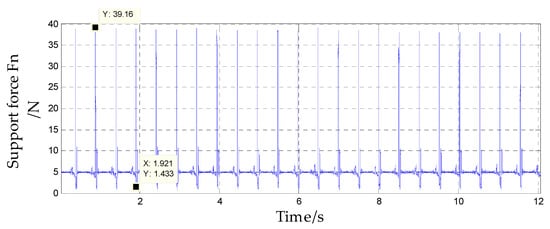 The support force of the isolated rolling platform can be obtained from Equation (10), as shown in Figure 17. Since Fn > 0, the assumption was true. In system A, the isolated rolling platform was supported by the lower spherical cap, but in system B, the spring was used to support the isolated rolling platform.