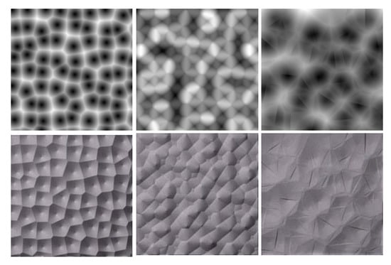- Worley, S. A Cellular Texture Basis Function. In Proceedings of the 23rd Annual Conference on Computer Graphics and Interactive Techniques, New Orleans, LA, USA, 4–9 August 1996; pp. 291–294. [Google Scholar]