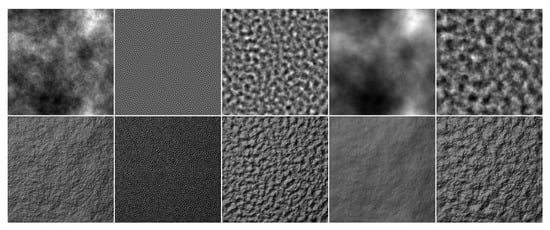 - Portilla, J.; Simoncelli, E.P. A parametric texture model based on joint statistics of complex wavelet coefficients. Int. J. Comput. Vis. 2000, 40, 49–70. [Google Scholar] [CrossRef]