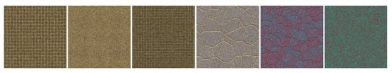 Procedural models are essential for providing provide realistic surface details in simulation or animation systems []. They have been widely used in many research and application fields involved with cyber-physical systems (CPS), such as Virtual Reality and Augmented Reality. Such systems require a large amount of high-resolution textures to provide an immersive sensation for users. Such high-resolution textures may even be required to be generated in real-time [,].