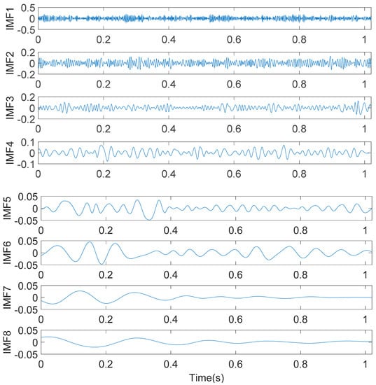 The time-domain diagrams of eight Intrinsic modal Function (IMF) components.