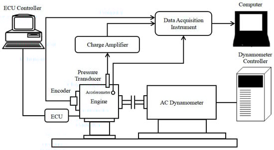 When the knock occurs, high frequency oscillation pressure waves will be created within the combustion chamber and induce high frequency vibration of the cylinder block []. The popular and valid approach is to measure knock impact by using several types of sensors such as pressure sensors and acceleration sensors. Cylinder pressure oscillations clearly indicate what happens during a knock cycle inside the combustion chamber. However, the cylinder pressure sensors are very expensive. Therefore, the most widely used method of measuring knock is using a simple acceleration senor attached to the cylinder block. This method is an easy and cost-effective task. However, vibrations induced by resonances in the combustion chamber have to be detected against a complex background of heavy noise and other vibrations. The vibration signal needs to be reprocessed.