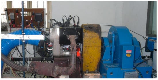 Figure 8 shows the engine test bench layout and Figure 9 shows the image of the test bench. A DH151 piezoelectric acceleration sensor is mounted on the engine block of the two-stroke SI UAV engine to collect engine block vibration signals. The cylinder pressure sensor selected is Kistler6125A type spark plug pressure sensor. A DH5902 high-speed data acquisition instrument is adopted for the acquisition of engine block vibration signals and cylinder pressure signals.