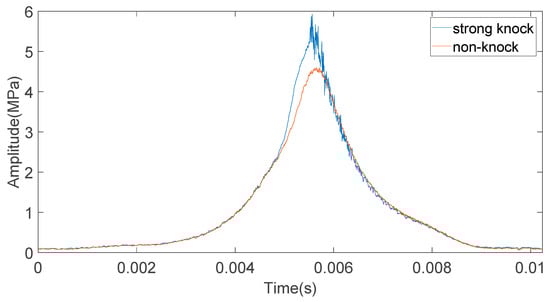 Curve of the cylinder pressure signal with strong knock and non-knock.