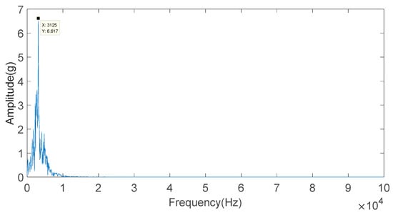 The reconstructed signal of node S (3,0) was analyzed by FFT, and its frequency characteristics were obtained, as shown in Figure 22. It can be seen that the frequency value is 3.125 kHz. Essentially, the knock frequency of the engine block vibration signal at 5200 rpm, as shown in Figure 15b, is 3.125 kHz. This is consistent with the frequency obtained by the IMFE method, as shown in Figure 18. Thus, the effectiveness of the IMFE method in extracting the characteristic frequency of engine block vibration signals under a weak knock condition is proven.