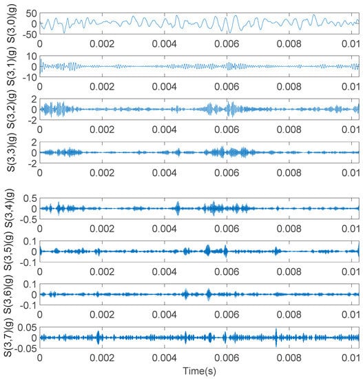 As can be seen from Figure 19, the third layer of the wavelet tree has eight nodes. Eight nodes in the third layer are reconstructed and sorted, respectively, and the reconstruction signals corresponding to each node are obtained, as shown in Figure 20.