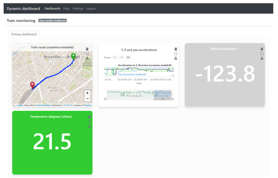 Traditional dashboards, such as those in References [1,2,3], consist of a set of visualizations chosen in advance and are designed for a specific set of data sources; for example, a dashboard composed of gauges displaying the current temperatures in the five ovens in an industrial bakery. Such fixed-structure dashboards make the sensor data inspection easier, but they also restrain the user to the use cases of the dashboard that were agreed upon during its development phase.