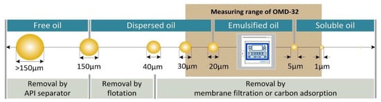 Technologies for the treatment of produced water according to oil droplet size. API = American Petroleum Institute, OMD-32 is an oil-in-water sensor.