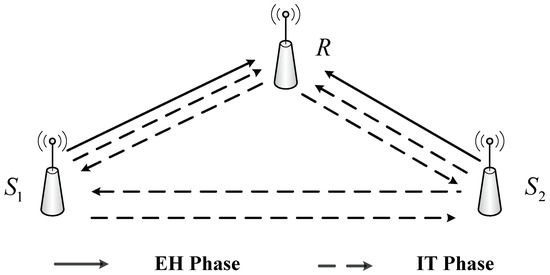 In the first phase, after doing EH, S1 will broadcast the information to the R node and S2 with remaining power . Hence, the received signal at the R node and S2 node can be expressed, respectively, as