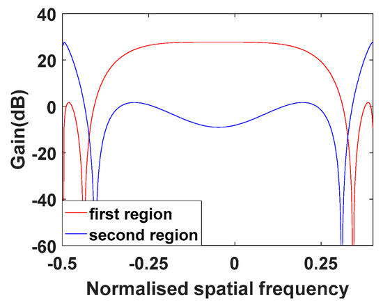 Figure 6 shows the filter response of the transmit beamformer designed for first region. As can be seen, the range ambiguous echoes can be separated in the spatial frequency.