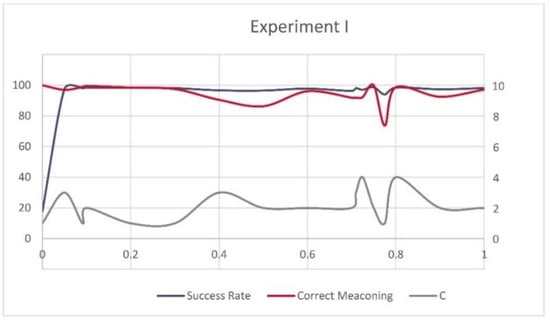 Success rate, correctly recognized meaconing records and C for Experiment I.