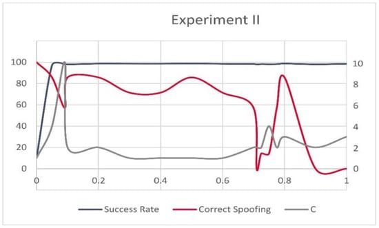 Success rate, correctly recognized spoofing records and C for Experiment II.