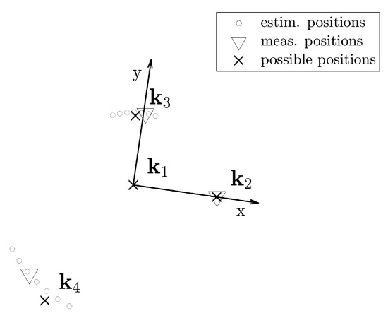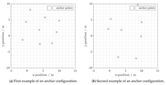 to judge the direction, where is a chosen threshold. If the measurements fulfill Equation (21), we consider the guessed anchor positions to be feasible.