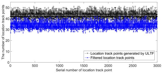 Because the miners go in and out of the mine in teams, there will be different users going in and out of the positioning area at different time intervals. In addition, the number of miners in each team is not the same. So, in order to better record and differentiate the user-location tracks, it is necessary to add time stamp into the user-location trajectory feedback packet. Accordingly, is modified to . The introduction of time stamp is useful for analyzing the proportion of location track points that are filtered better at a specific time interval.