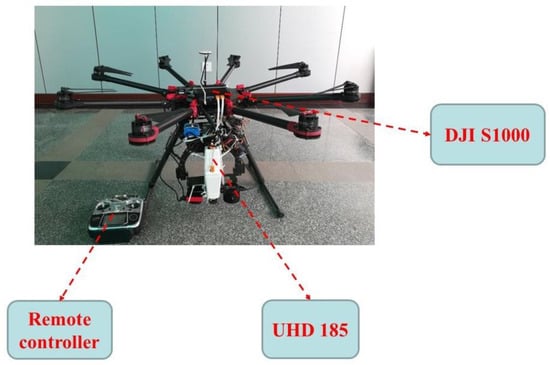 An eight-rotor UAV remote sensing platform (DJI S1000 UAV, SZ DJI Technology Co., Ltd., Sham Chun, China; Figure 2) was used to acquire hyperspectral images of the experimental plots. The UAV has a single arm length of 386 mm, a net body weight of 4.2 kg, a carrier take-off mass of 6 kg, a flight height of 50 m, and two 18,000 mAh (25 V) batteries, which can last for 30 minutes flying at a speed of 8 m/s.