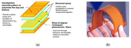 - Bent, A.A.; Hagood, N.W. Piezoelectric fiber composite with interdigitated eletrodes. J. Intell. Mater. Syst. Struct. 1997, 8, 903–919. [Google Scholar] [CrossRef]