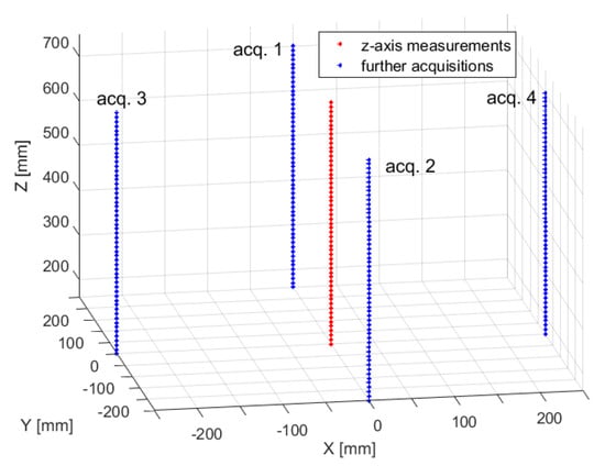 Moreover, further measurements have been performed, according to the sensor positions indicated in Figure 9, to explore a larger volume. The results obtained in these new positions confirm the ones presented in Figure 11, as can be seen, for example, in Figure 13, which shows the repeatability on the trajectory labeled “acq. 2”.