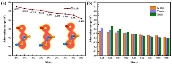 3.3. Adsorption Mechanism of SO2 Under Stress