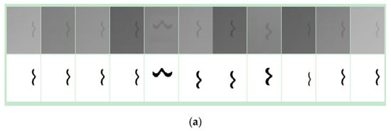 Figure 13a shows the training samples for L crack generated in 3D-LDS in different scanning angles, distances and optical integral times. The labels (ground truth) in second row are mainly delineated manually and generated by an interactive method to ensure accuracy. In this work, the data augmentation strategy was utilized, the parameters we used for generating a new image are as follow:rotation_range,translation_shift_range,zoom_range and blur operation. Roughly, the training and testing data sets were split in 7:3 separately from different original data. Figure 13b shows the testing results that actually is a reconstructed image from the mapping pixels’ prediction values. We can set a different classification number for the softmax function to obtain different output. However, the final binary image will be segmented by a fixed threshold.