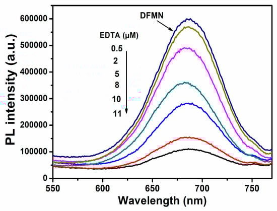 Fluorescence spectra of DMFN under different concentrations of EDTA.