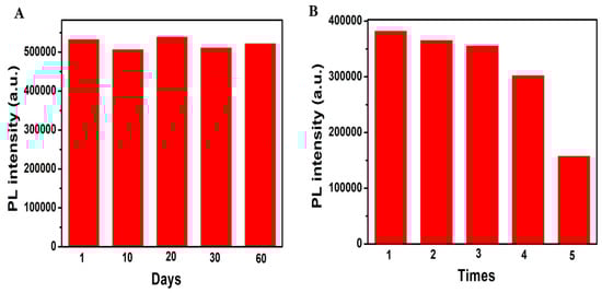 (A) PL intensity of DMFN under different days and (B) PL intensity of DMFN under different recyclability times on the system.