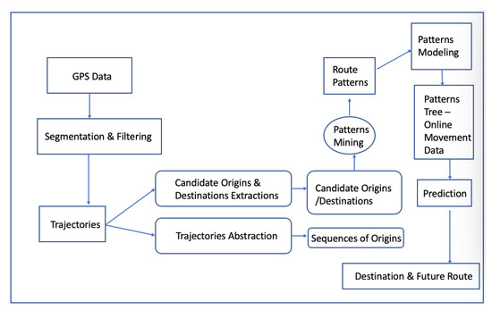 - Chen, L.; Lv, M.; Chen, G. A system for destination and future route prediction based on trajectory mining. Pervasive Mob. Comput. 2010, 6, 657–676. [Google Scholar] [CrossRef]