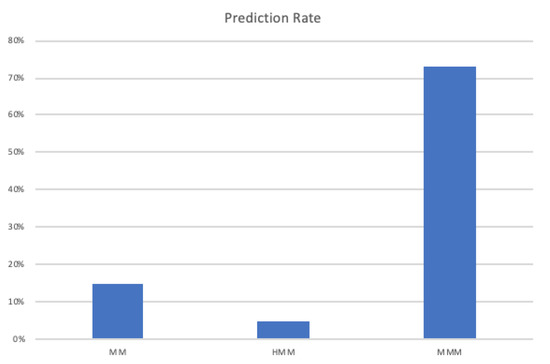 Mixed Markov–Chain Model (MMM) vs. Hidden Markon Model (HMM) vs. Markov Model (MM) step prediction rates in Reference [53].
