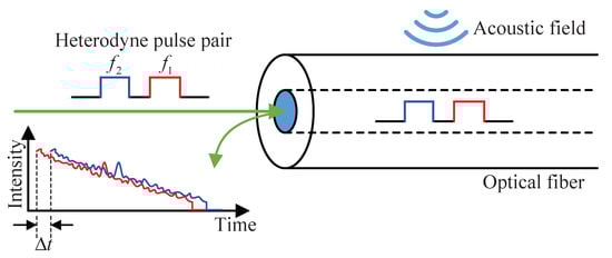 Figure 1 illustrates the working principle of HD-DAS system, in which a heterodyne pulse pair, offset in both temporal and frequency domains, are injected into the sensing optical fiber. The heterodyne pulse pair functions similar to the sensing and reference arms of an interferometer. Thus, the phase change induced by the external acoustic field is modulated onto the heterodyne frequency, which can be retrieved using a heterodyne demodulation algorithm [19]. As the two pulses propagate along the same fiber, the noise properties are shared with each other and thus self-cancelled. Therefore, this system can retrieve the demodulated signal with high signal-to-noise ratio (SNR) after heterodyne detection.